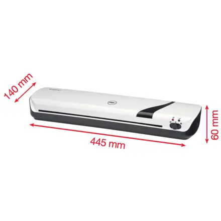 Ielaminē no ID kartes līdz A3 izmēram. Gatavs lietošanai 4 minūtēs. Izmanto laminēšanas plēves no 2×75 līdz 2x 125 mikroniem. Vienkārša vienpakāpes laminēšana, darbībai izmantojot vienkāršu slēdzi. Aukstuma iestatījums lietošanai ar pašlīmējošiem aukstā blīvējuma laminēšanas plēvēm, lai aizsargātu pret materiālus pret karstumu. Laminē līdz 8x plēvēm 10 minūtēs. Ielaminē 25cm minūtē. Iestrēguma atbrīvošanas svira, kas ļauj manuāli izņemt iestrēgušas plēves. LED indikators, kas parāda, kad strāva ir ieslēgta (sarkana) un iekārta ir gatava (zaļa). Iekļauts sākuma iepakojums ar 5x A4 laminēšanas plēves (2 x 75 mikroni). 1 gada garantija
